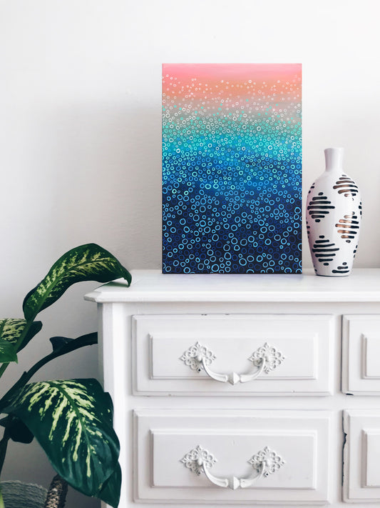 Beach Bubbles II – Coastal Abstract Painting in Blue, Turquoise & Pink
