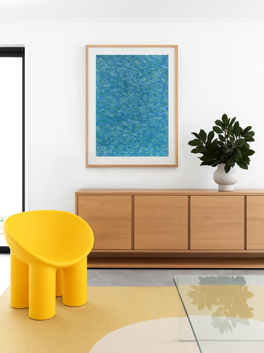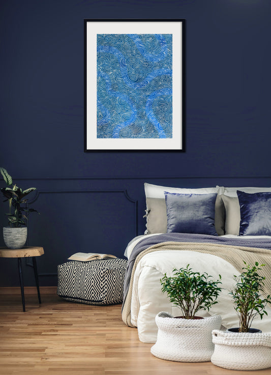 Water Ripples Study I – Abstract Blue Linework Inspired by Flowing Water