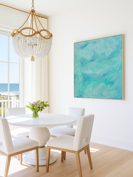 Salt Air – Large Square Coastal Abstract Painting in Aqua and Blue