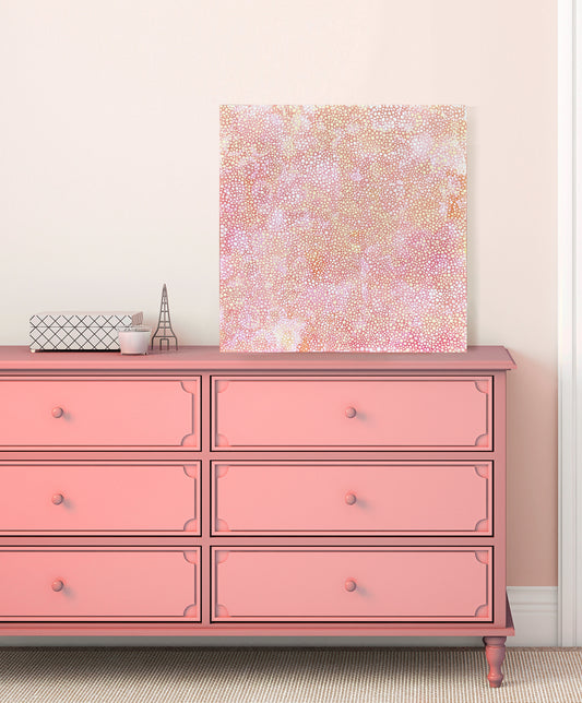 Rose Pebbles – Abstract Mixed Media Painting with Shimmering Paper Detail