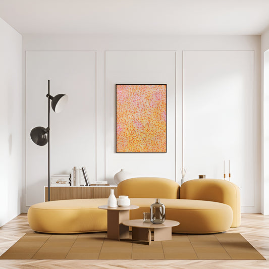 Large Colourful Abstract Painting – ‘Summer Sorbet’ by Jennifer Bell in Mango, Yellow & Pink