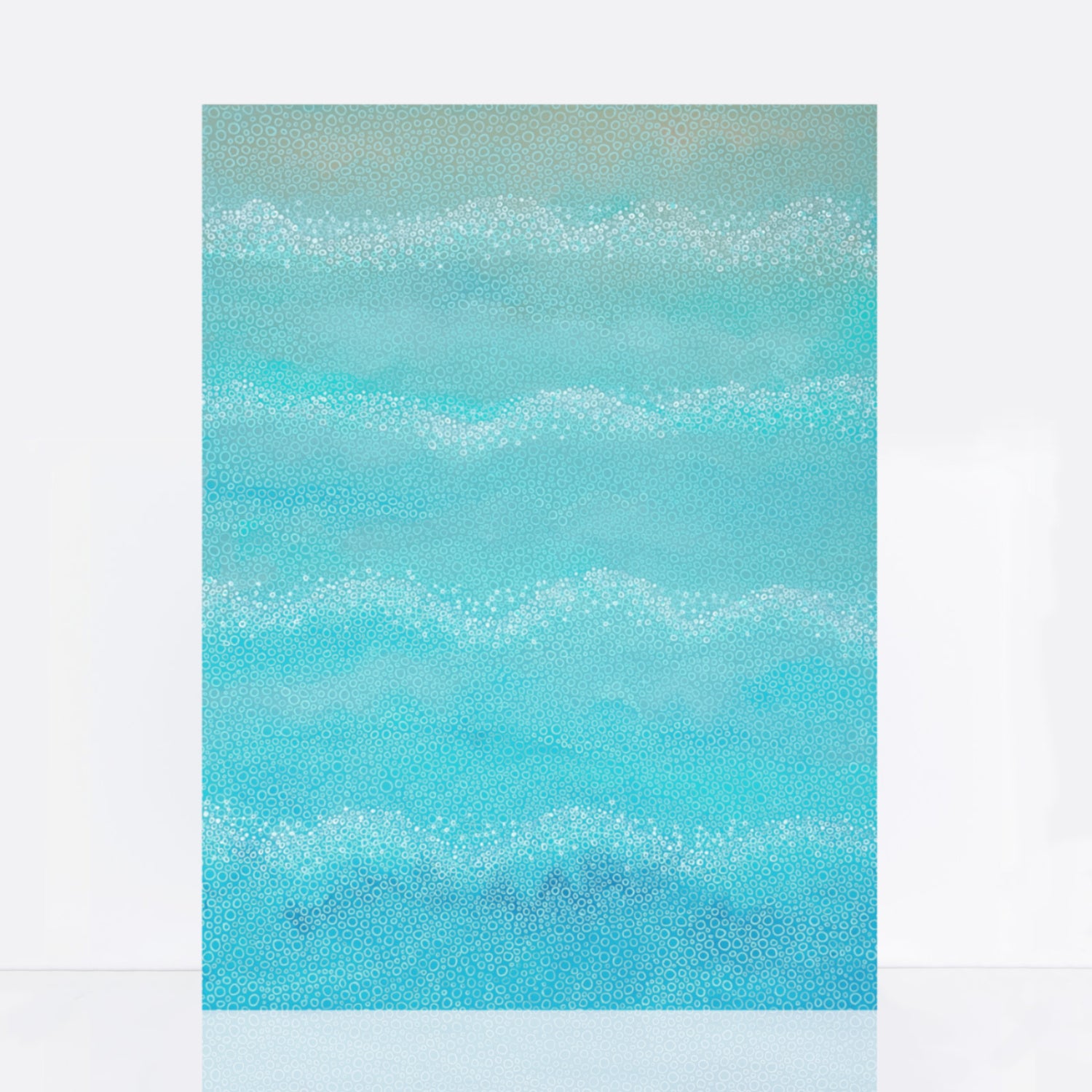 A sense of peaceful repetition and balance anchors the composition, inviting the viewer to pause and breathe. Inspired by the movement of water and the sensory experience of visual snow, this artwork brings a feeling of spaciousness and flow making a subtle statement piece for modern coastal interiors.