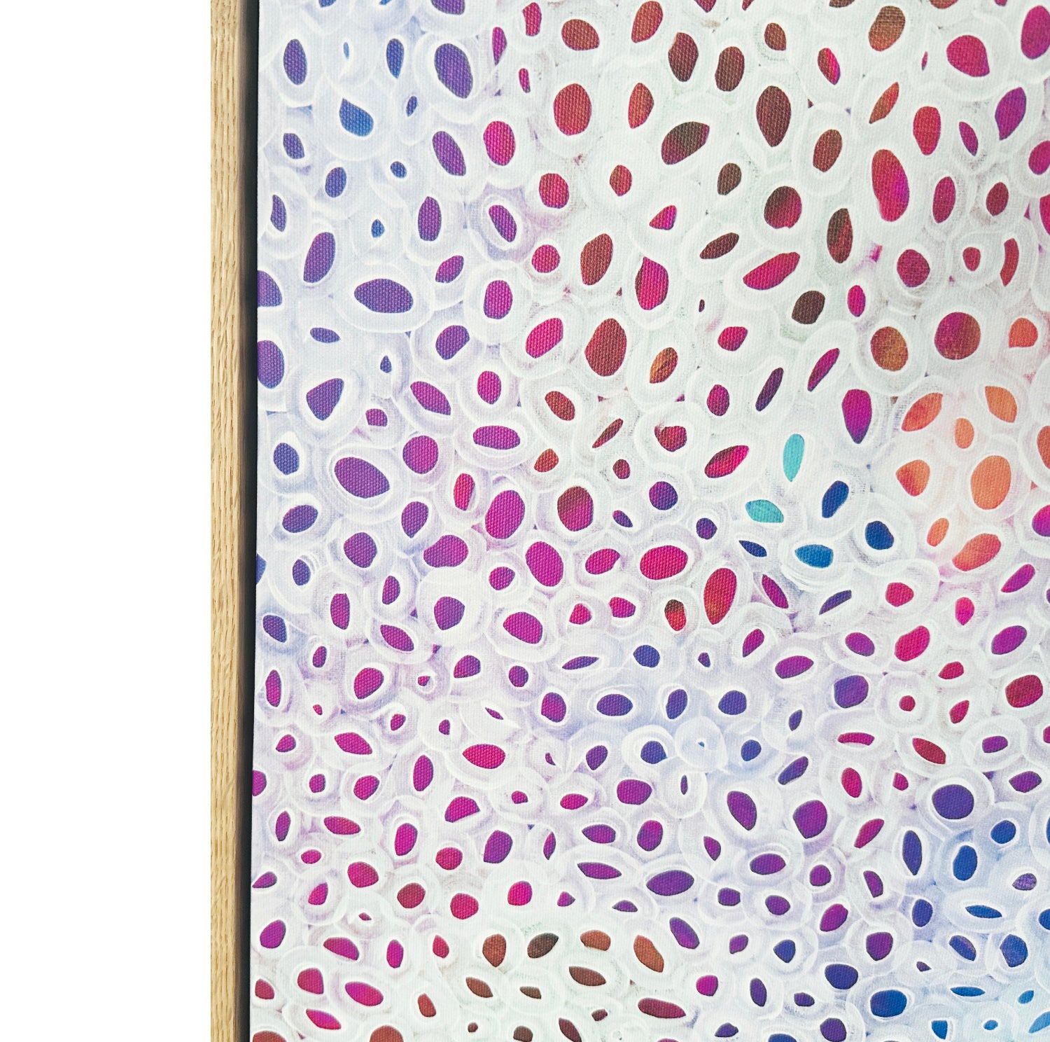 Blending warm and cool tones, the artwork evokes the feeling of sunlight filtering through a garden in full bloom. Its lively palette and intricate layering bring a sense of optimism and vitality to any interior, making it perfect for bright, contemporary spaces or rooms that celebrate playful colour and artistic depth.